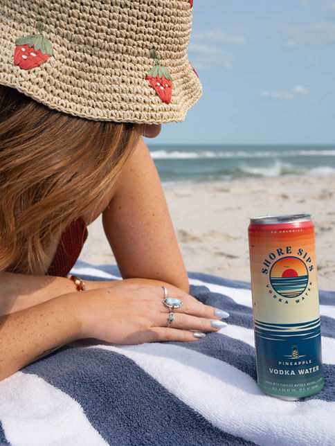 SHORE SIPS VODKA WATER IS AN RTD CANNED COCKTAIL WITH NO CARBONATION AND ONLY 80-90 CALORIES. THEIR BRANDING, RECENTLY REVAMPED WITH A MORE FUNCTIONAL APPROACH, HONORS THE COASTAL LIFESTYLE OF THE JERSEY SHORE.